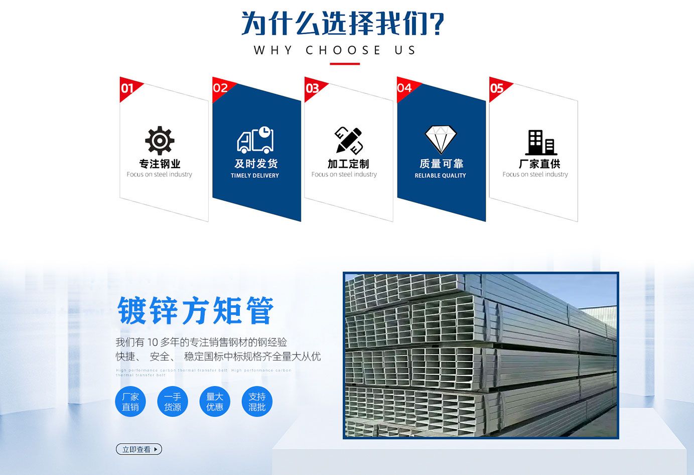 天津奧冶鋼鐵銷(xiāo)售有限公司長(zhǎng)期銷(xiāo)售熱鍍鋅無(wú)縫鋼管,大口徑熱鍍鋅無(wú)縫管,鍍鋅無(wú)縫管,熱鍍鋅方矩管,鍍鋅方矩管等各種鍍鋅產(chǎn)品,廣泛應(yīng)用于建筑、機(jī)械、煤礦、化工、電力、鐵道車(chē)輛、汽車(chē)工業(yè)、公路、橋梁、集裝箱、體育設(shè)施、農(nóng)業(yè)機(jī)械、石油機(jī)械、探礦機(jī)械等制造工業(yè)。鍍鋅鋼管表面有熱浸鍍或電鍍鋅層的焊接鋼管。鍍鋅可增加鋼管的抗腐蝕能力,延長(zhǎng)使用壽命。鍍鋅管的用途很廣,除作輸水、煤氣、油等一般低壓力流體的管線管外,還用作石油工業(yè)特別是海洋油田的油井管、輸油管,化工焦化設(shè)備的油加熱器、冷凝冷卻器、煤餾洗油交換器用管,以及棧橋管樁、礦山坑道的支撐架用管等。熱鍍鋅管是使熔融金屬與鐵基體反應(yīng)而產(chǎn)生合金層,從而使基體和鍍層二者相結(jié)合。熱鍍鋅是先將鋼管進(jìn)行酸洗,為了去除鋼管表面的氧化鐵,酸洗后,通過(guò)氯化銨或氯化鋅水溶液或氯化銨和氯化鋅混合水溶液槽中進(jìn)行清洗,然后送入熱浸鍍槽中。熱鍍鋅具有鍍層均勻,附著力強(qiáng),使用壽命長(zhǎng)等優(yōu)點(diǎn)。熱鍍鋅鋼管基體與熔融的鍍液發(fā)生復(fù)雜的物理、化學(xué)反應(yīng),形成耐腐蝕的結(jié)構(gòu)緊密的鋅一鐵合金層。合金層與純鋅層、鋼管基體融為一體,故其耐腐蝕能力強(qiáng)。本公司將面向客戶的不同要求,努力做好產(chǎn)品的售前售后服務(wù)工作,愿以良好服務(wù)與各界朋友真誠(chéng)合作,質(zhì)量出效益,信譽(yù)出市場(chǎng)。...